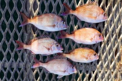 カスゴ級マダイ | 28〜26cm | 4匹 | カゴ釣り(ハリス2.5号・タナ8ヒロ) | オキアミ |