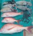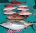 | 山口様ら2名、ハタ28〜47cm4匹、イトヨリ37cm2匹、青ハタ37、マダイ40cm各1匹釣りました。 |