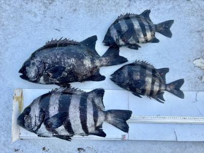 イシダイ | 38〜55cm | 4匹 | 底物仕掛け | カニ |