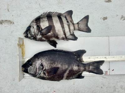 イシダイ | 43〜50cm | 2匹 | 底物仕掛け | ウニ |