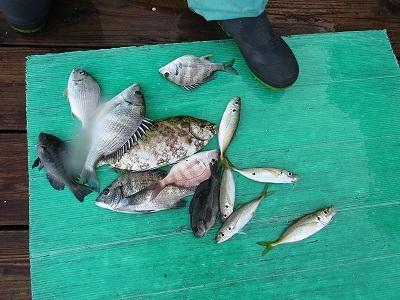 | 釣り場 | 釣り人 | 魚種 | 大きさ | 匹数 | 仕掛け | エサ |