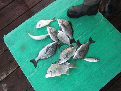 | 釣り場 | 釣り人 | 魚種 | 大きさ | 匹数 | 仕掛け | エサ |