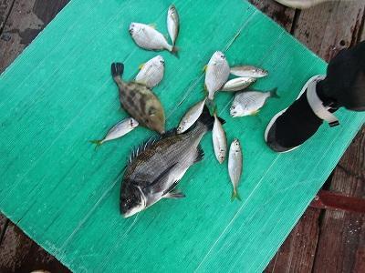 | 釣り場 | 釣り人 | 魚種 | 大きさ | 匹数 | 仕掛け | エサ |
