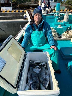 チヌ | 45〜47cm | 2匹 | 竿釣り、天秤2本針、鉄仮面100号 | 撒き餌:アミエビ・刺し餌:オキアミ |