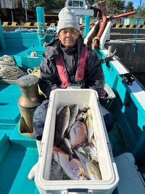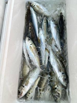 マアジ・マルアジ | 27〜33cm | 20〜25匹 | 竿釣り、サビキ仕掛け、オモリ30号 | アミエビ |