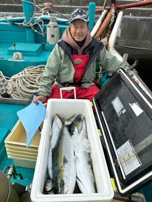 メジロ | 70〜75cm | 4匹 | 竿釣り、落とし込み仕掛け、オモリ80号 | イワシ |