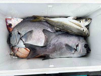 イシダイ | 35〜40cm | 2匹 | 竿釣り、天秤2本針、オモリ80号 | オキアミ | |