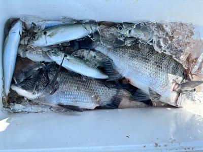 チヌ | 40〜46cm | 1〜2匹 | 竿釣り、天秤2本針、オモリ80号 | オキアミ |