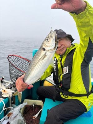 ジャンボアジ | 45〜50cm | 15匹 | 竿釣り、天秤3本針、鉄仮面100号 | アミエビ |