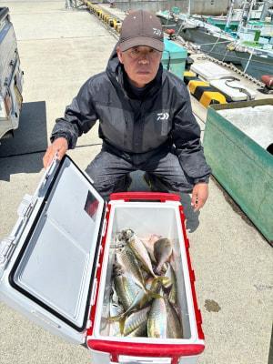 イサギ | 27〜37cm | 35匹 | 竿釣り、天秤3本針、鉄仮面100号 | アミエビ | |