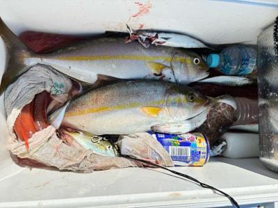 カンパチ | 45〜50cm | 2匹 | 竿釣り、落とし込み仕掛け、オモリ50号 | 小アジ | |