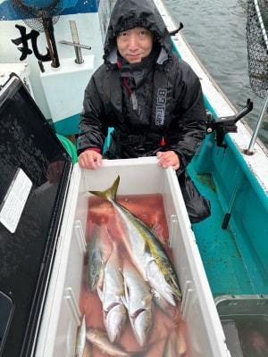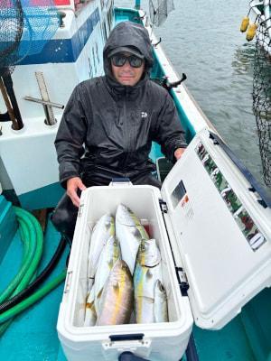 | 青物・根魚狙いで落とし込み釣りに出船しました! 風雨の中頑張って頂き、カンパチ、メジロ、ハマチなど釣れて楽しんで頂きました! 明日も出船しますので宜しくお願い致します。 |