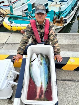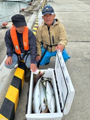 | 青物狙いで落とし込み釣りと別船でイサギ五目釣りに出船しました! 青物狙いは、カンパチ、メジロ、ハマチ、オオモンハタ、チャイロマルハタなど釣れて楽しんで頂きました! イサギ五目釣りは、イサギにチダイがボチボチ釣れて楽しんで頂きました! |