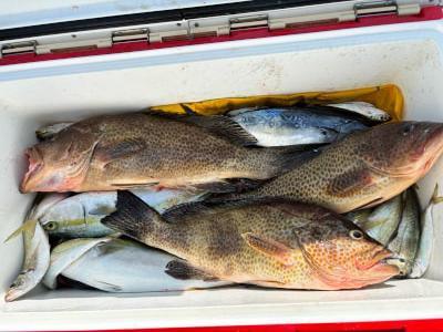 | 青物・根魚狙いで落とし込み釣りに出船しました! カンパチ、メジロ、ツバス、オオモンハタなど釣れて楽しんで頂きました♪ 明日も出船しますので宜しくお願い致します。 |
