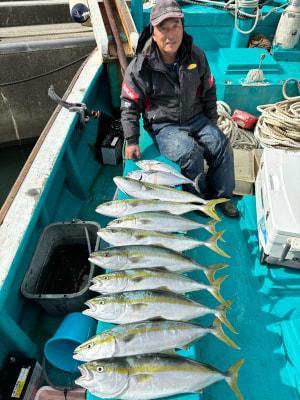 メジロ | 70〜75cm | 3〜9匹 | 竿釣り、落とし込み仕掛け、オモリ50号 | イワシ | |