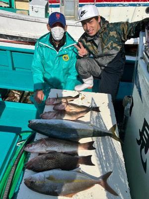 カンパチ | 50cm | 1匹 | 竿釣り、落とし込み仕掛け、オモリ50号 | アジ | |