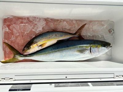 カンパチ | 40〜50cm | 2匹 | 竿釣り、落とし込み仕掛け、オモリ50号 | アジ | |