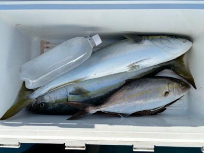 カンパチ | 38〜50cm | 3匹 | 竿釣り、落とし込み仕掛け、オモリ50号 | アジ | |