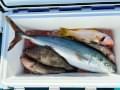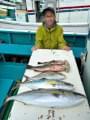 | 昨日の落とし込み釣りの釣果!雨が降る中頑張って頂き、カンパチにメジロが釣れて楽しんで頂きました!明日も落とし込み釣りに出船しますので宜しくお願い致します。明日は、別船イサギ五目釣りも出船しますので宜しくお願い致します。 |