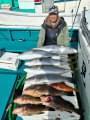 | 青物・根魚狙いで落とし込み釣りに出船しました!風雨の中頑張って頂き、カンパチ、メジロ、ハマチなど釣れて楽しんで頂きました!明日も出船しますので宜しくお願い致します。 |