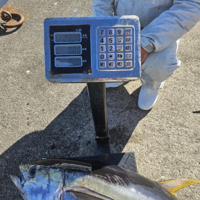 | キハダふかせ出船しました。ラスト3分前にようやくHITキハダ23kgビンタ8kgでした。明日も頑張ります。 |