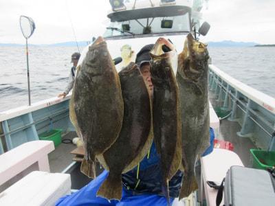 ヒラメ | 52〜62cm | 6匹 | 流し釣り | 活アジ | |